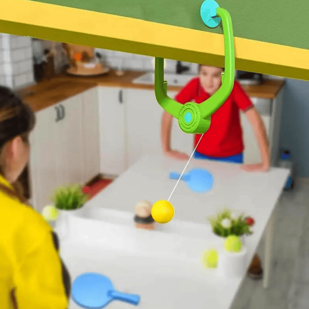 Kids Ping Pong Training Set with Adjustable Elastic String – Indoor Table Tennis Practice Kit with 2 Paddles & 6 Balls