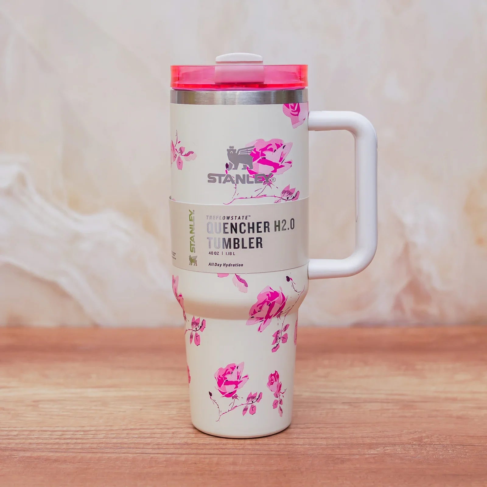 Stanley Quencher H2.0 Tumbler 1.18L – Pink Floral Print with Handle & Straw